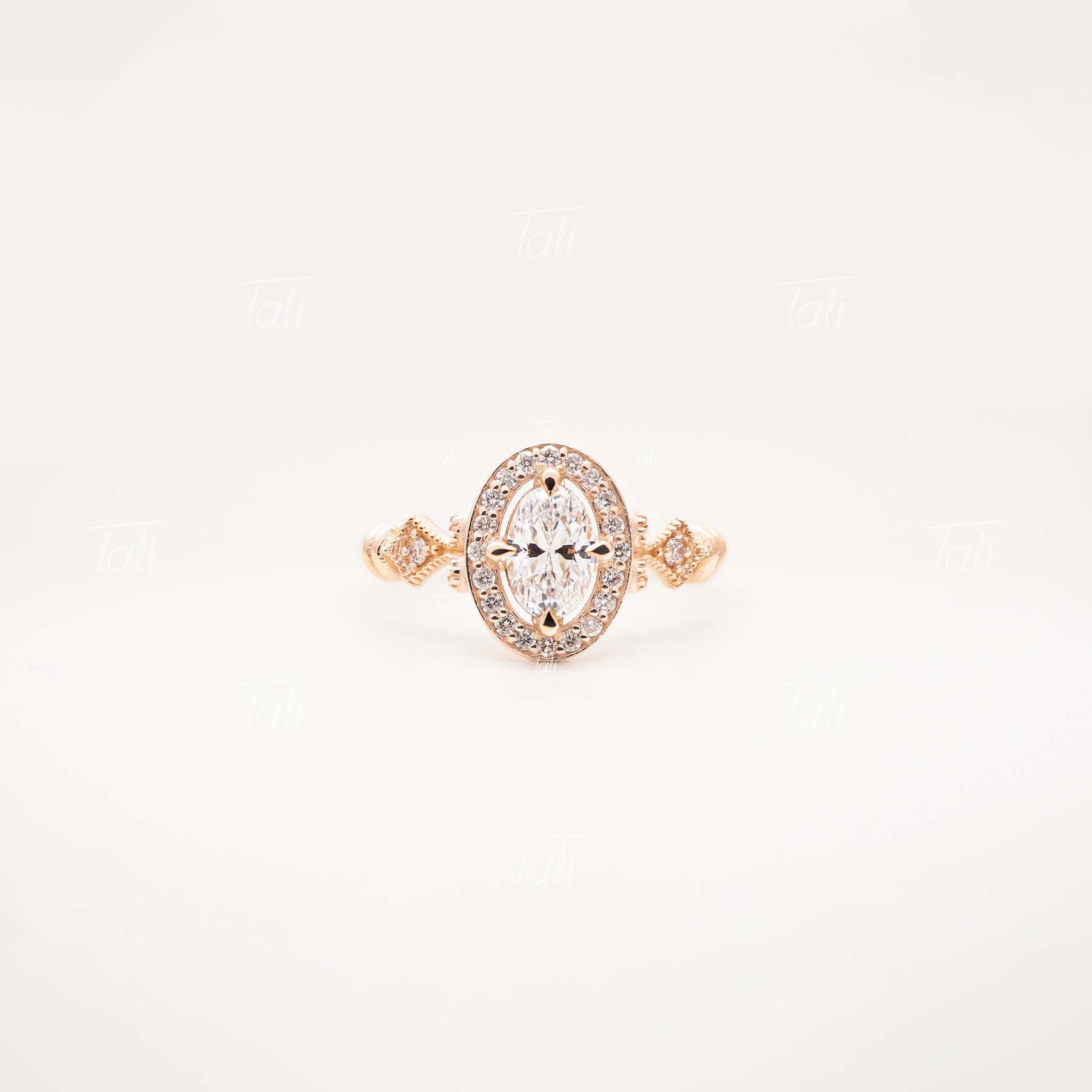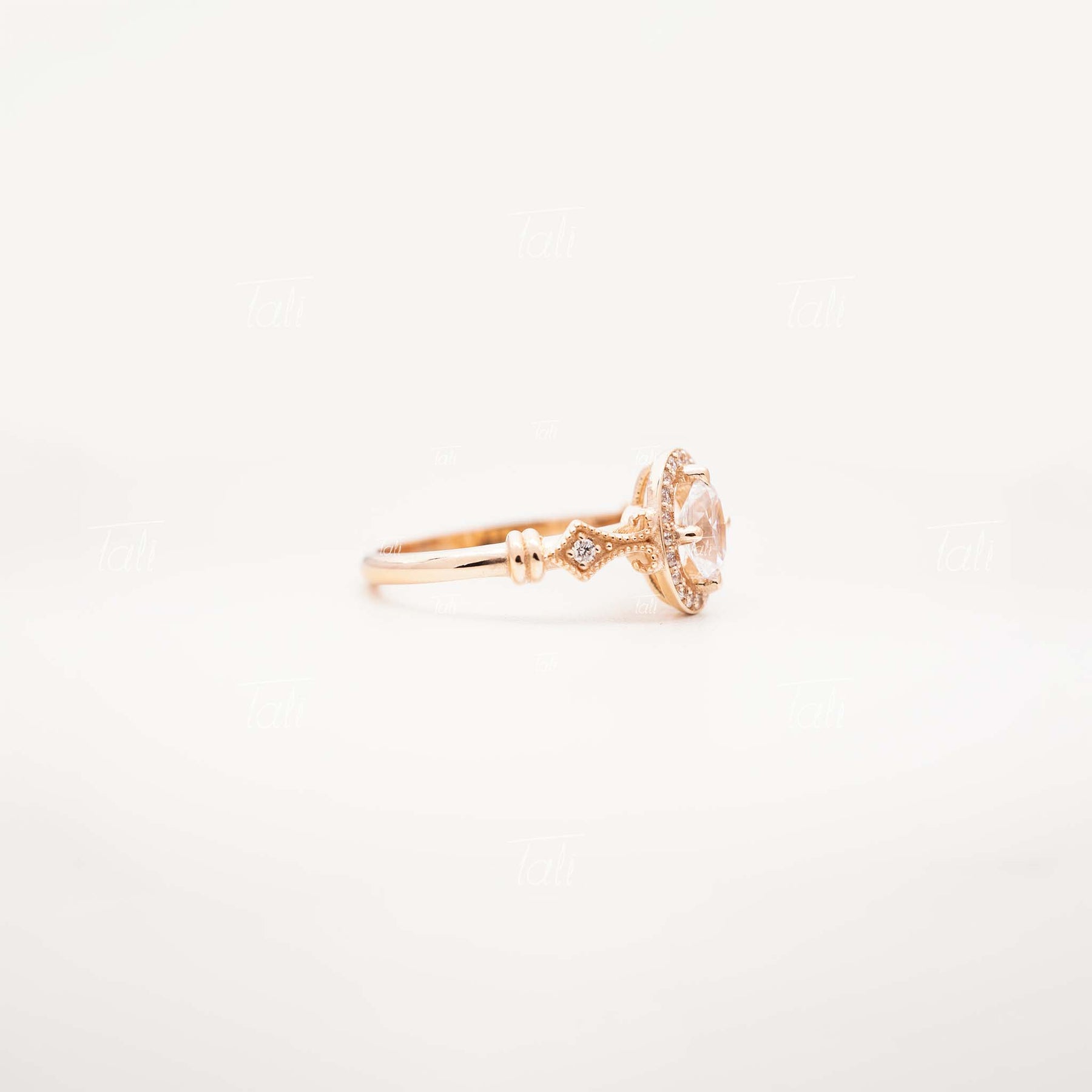 Asha Vintage Beyaz Topaz Pırlanta Altın Yüzük