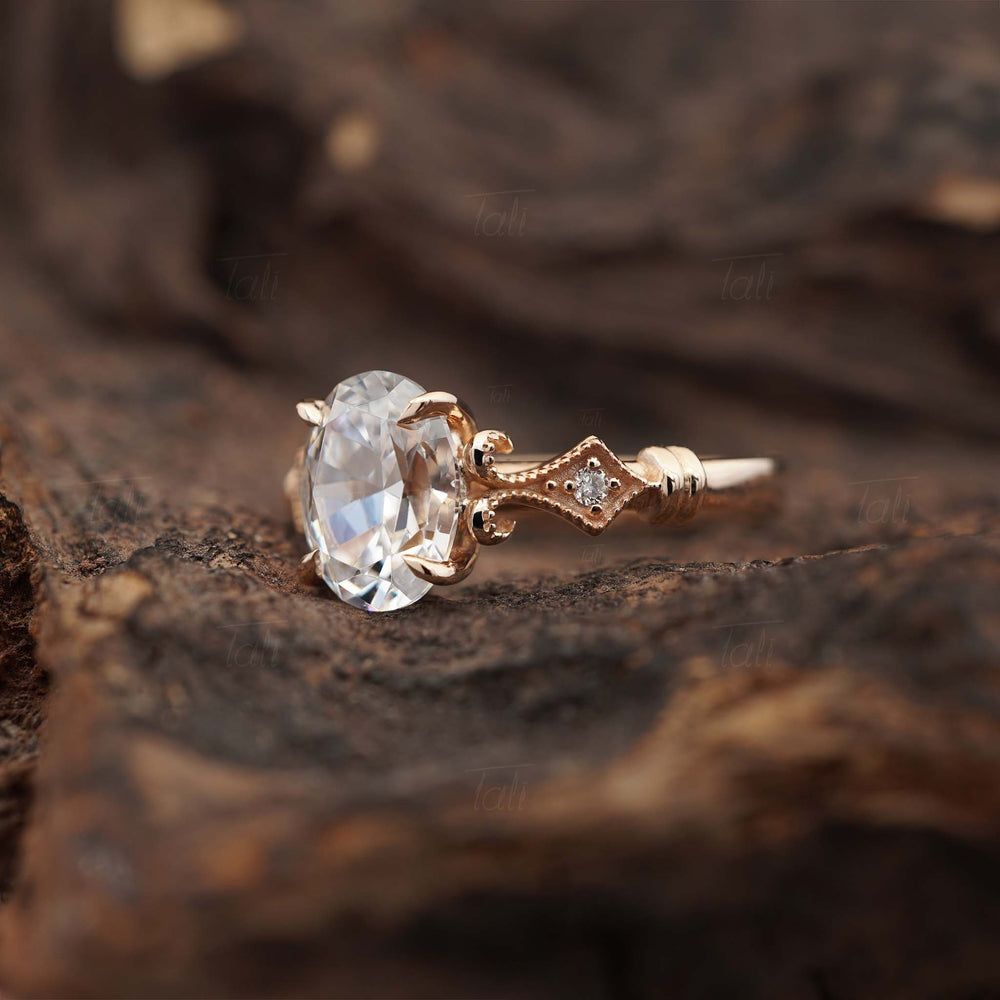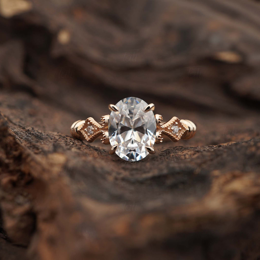 Vintage Green Moissanite Solitaire Weave Gold Ring